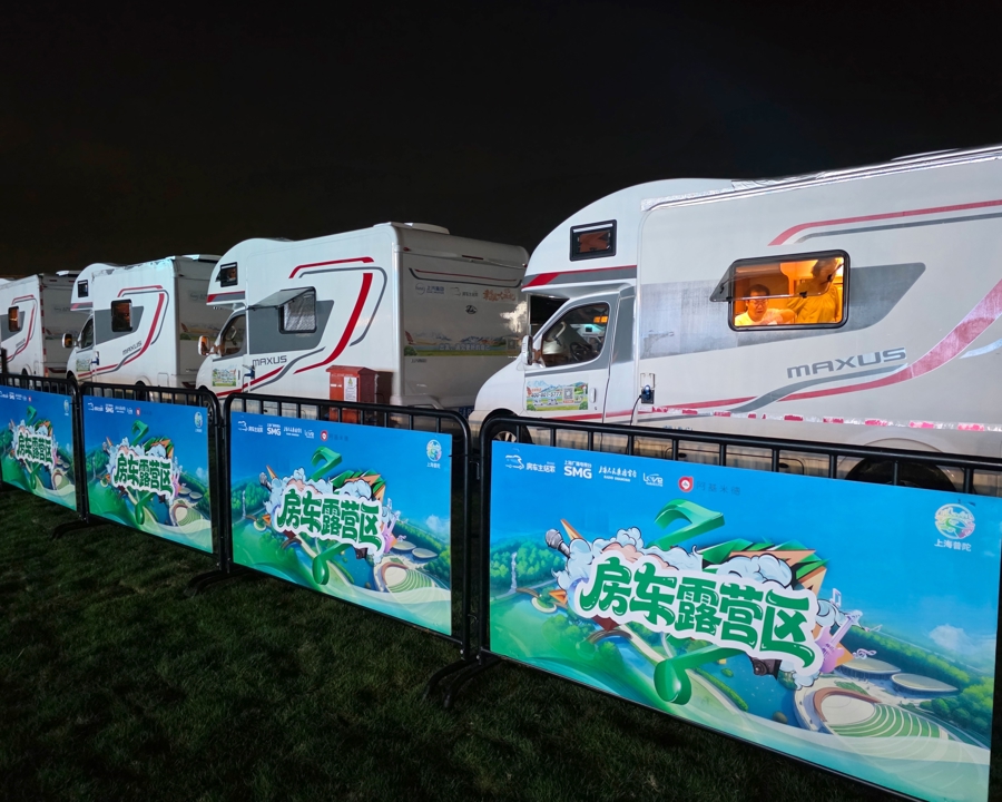 作为上海市中心城区最大的开放式绿地,这里绿树如伞,草坪如毯,花卉点缀其间。正值国庆佳节,公园内国旗飘扬,处处洋溢着节日的喜庆气氛。而在绿地一隅,近50辆房车错落有致地组成一个临时的“音乐村落”,成为嘉年华中最引人注目的风景。